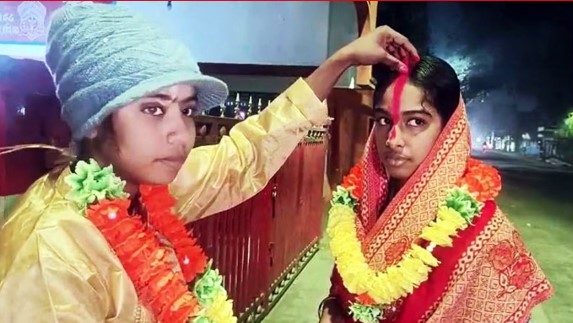 পপি মণ্ডল ও প্রতিমা বিশ্বাসের বন্ধুত্বপূর্ণ সম্পর্ক গড়ায় প্রেমে। কিন্তু তাদের ভালোবাসা বাড়ি থেকে মানতে চায়নি কেউই। পরে পালিয়ে বিয়ে করেন তারা। ঘটনাটি ভারতের মালদহের। পপি-প্রতিমা দুজনেই প্রাপ্তবয়স্ক নারী। ভালোবাসার টানে একে অপরকে মালা পরিয়ে সিঁদুর দান করিয়ে বিয়ে করেন তারা। এই ঘটনার সাক্ষী হিসেবে ওই এলাকায় অসংখ্য মানুষ ভিড় জমান। বিয়ের ঘটনাকে ঘিরে মালদহে