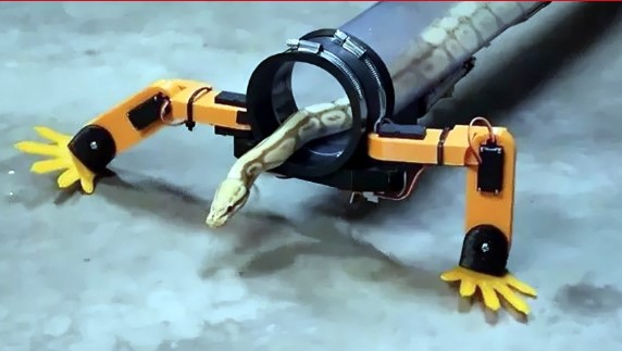 বুকে ভর দিয়ে পিলপিল করে চলাফেরা করে থাকে সাপ। তবে সেই সাপকে এবার চার পায়ে হাটালেন এক ব্যক্তি। অ্যালেন প্যান নামে পেশায় প্রকৌশলী ওই ব্যক্তি সাপের জন্যে তৈরি করেছেন চার পা বিশিষ্ট এক রোবট। এরপর একটি সাপকে সেই রোবটে ঢুকিয়ে তৈরি করেছেন এক ভিডিও। সম্প্রতি সেই ভিডিওটি সামাজিক যোগাযোগ মাধ্যম ও ইউটিউবে প্রকাশ করেছেন তিনি।