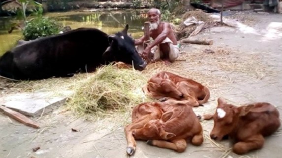 একসাথে তিনটি বাছুর জন্ম দিলো ‍একটি গাভী, খুশি বৃদ্ধ