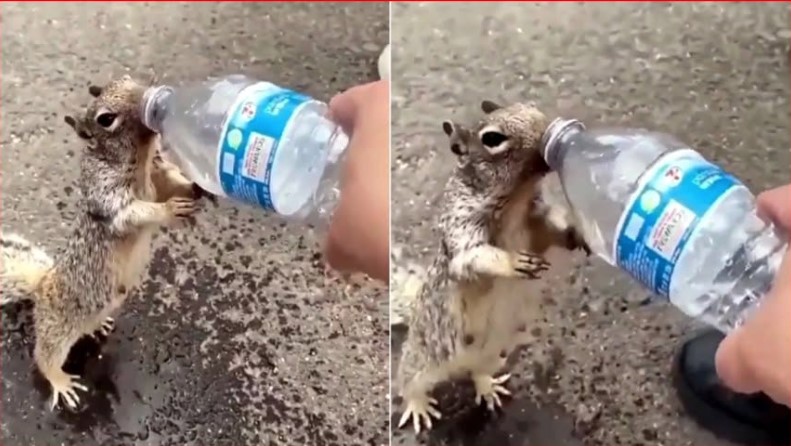 হাতজোড় করে পানি চাইলো কাঠবিড়ালী, তৃষ্ণা মিটিয়েই দৌড়