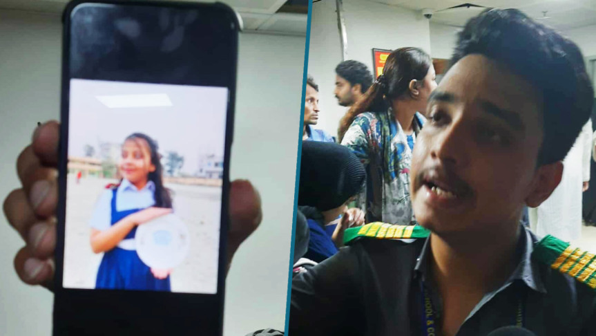 জাতীয় বার্ন ও প্লাস্টিক সার্জারি ইনস্টিটিউটের তৃতীয় তলায় কক্ষের বাহিরে ছেলেকে জড়িয়ে হাউমাউ করে কান্না করছেন মা ইয়াসমিন আক্তার। তার পঞ্চম শ্রেণিতে পড়ুয়া মেয়ে নুরে জান্নাত উষা বিমানবাহিনীর প্রশিক্ষণ বিমান বিধ্বস্তের ঘটনায় পুড়ে গেছে। তিনি বিলাপ করে বলছেন, ‘আমার মেয়ের সব পুড়ে গেছে, তোমরা কেউ তার জ্বলা বন্ধ করো। আমি আমার মেয়ের কষ্ট সহ্য করতে