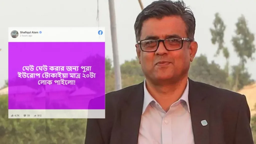 অন্তর্বর্তী সরকারের প্রধান উপদেষ্টা অধ্যাপক ড. মুহাম্মদ ইউনূসের চার দিনের রাষ্ট্রীয় সফর চলাকালে যুক্তরাজ্যে তার বিরুদ্ধে আয়োজিত এক ক্ষুদ্র পরিসরের প্রবাসী বিক্ষোভ ঘিরে সামাজিক যোগাযোগ মাধ্যমে শুরু হয়েছে নতুন আলোচনা ও ব্যঙ্গাত্মক প্রতিক্রিয়া। বিক্ষোভকারীদের অল্পসংখ্যক উপস্থিতি নিয়ে প্রধান উপদেষ্টার প্রেস সচিব শফিকুল আলম একটি রসিকতাপূর্ণ স্ট্যাটাস দেন তার ব্যক্তিগত ফেসবুক প্রোফাইলে। তিনি লেখেন, ঘেউ ঘেউ